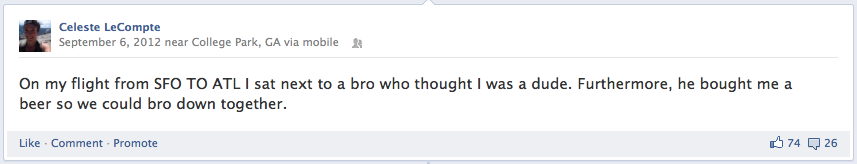 According to Facebook, my most popular post of the year — with 74 likes — happened on an airplane: